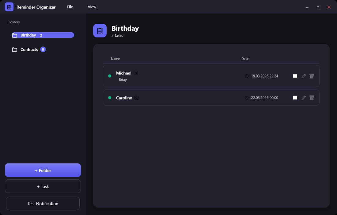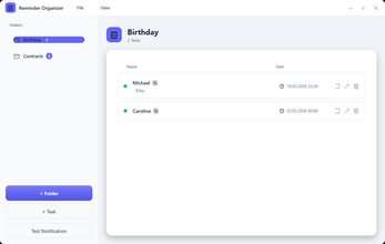 - Create folders to sort tasks (e.g., "Birthdays", "Contracts")